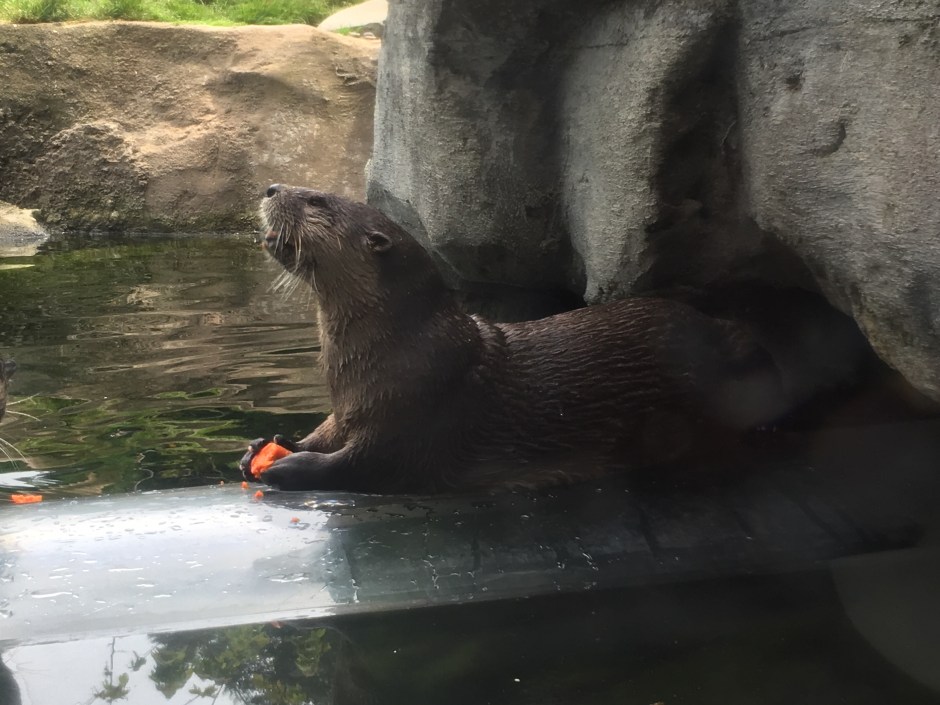 3 pm: Otter Feeding – Oh my goodness! Wow talk about hungry otters! When they saw/heard the zookeepers coming these guys were swimming like crazy. The pups were super active and even when the zookeeper threw in pieces of fish they were hungry for more. Near the end of the feeding the zookeeper threw in chunks of carrots. How cute!