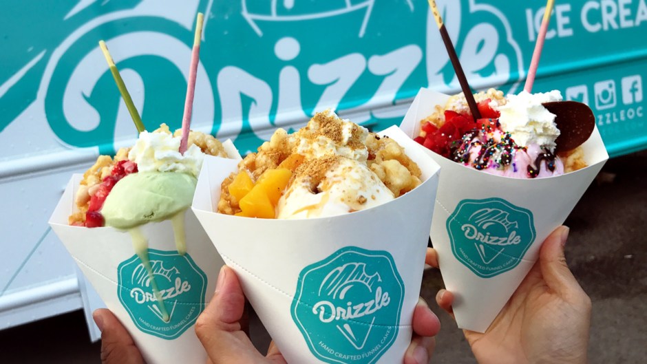 While summer may be coming to a close, the weather in Southern California sure doesn’t feel like it’s cooling down anytime soon. I periodically look at my car’s thermostat and it’s often in the 90-100 degree range – ouch! Thankfully, the warm climate attracts cool desserts like this ice cream and funnel cake concept!