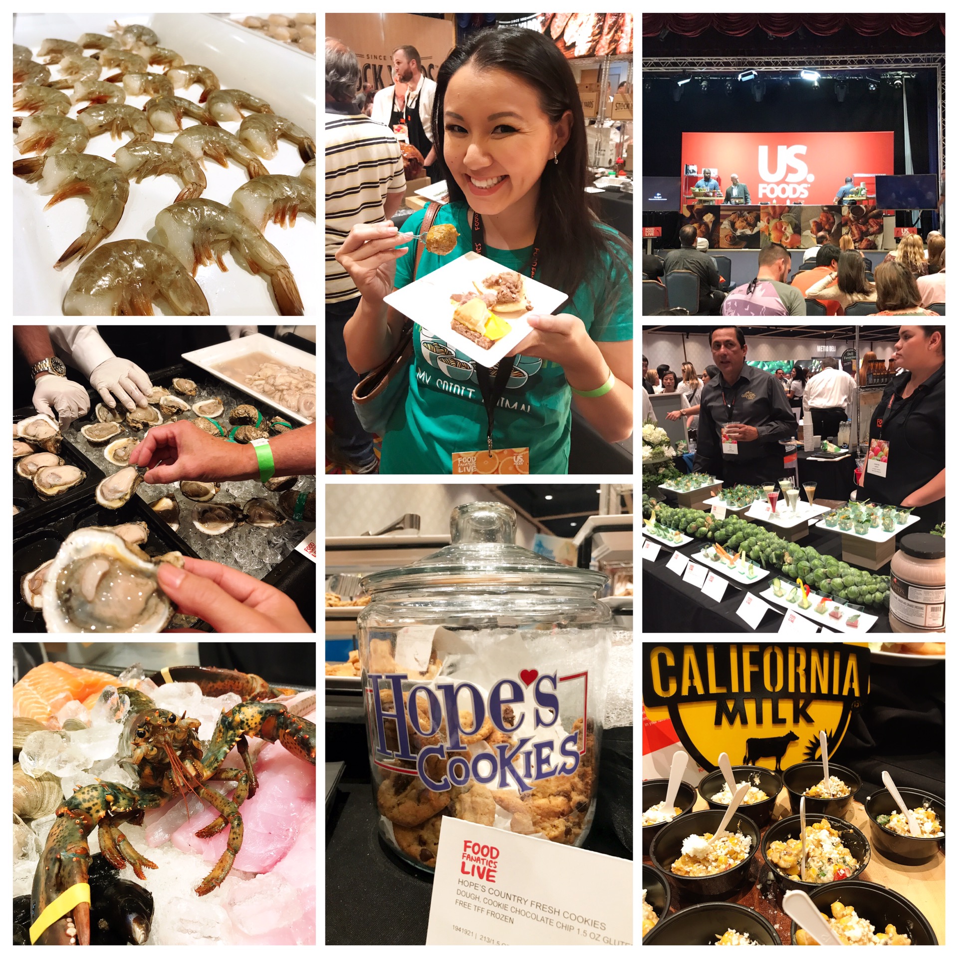 As a foodie I’ve gone to my fair share of food festivals, but when I was informed about an upcoming industry event I didn’t know quite what to expect. Hosted by US Foods and Food Fanatics LIVE at the Disneyland Hotel, this annual food convention helps individuals from all areas of the food industry to network and get the latest scoop on the hottest trends. Guest were given ample samples of a variety of entrees, desserts, and garnishes, and I was lucky enough to cover the event with a wide grin and stuffed belly – all in the name of journalism of course. 🙂 img_2398When I first entered the venue I was overwhelmed by the layout. At the center there was a culinary demonstrations with industry-leading chefs on the Food Fanatics Stage as well as belly bars for guests to enjoy samples while listening to the lectures. I decided to venture toward the left side of the event and boy did I feel like I hit the jackpot – it was the protein station! 😀 img_2395-1There were refrigerators filled with beautiful meat cuts including: lamb, beef, and pork. I waited in line and saw the chefs cook and slice the meat right in front of me. Stockyards definitely produces premium cuts and on the other side was the seafood section. Salmon, bay scallops, crawfish, you name it and prepared in a variety of ways, fried, steamed… or in the case of oysters raw.
