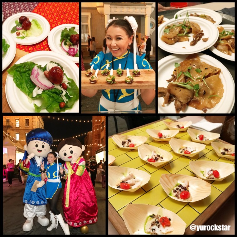 Over the Labor Day weekend, I along with other foodies made our pilgrimage to the annual event to sample some of LA’s best and kick off the three-day weekend with fun, food and flavor! Held right on the sets used for many movies and shows, this outdoor venue made a perfect backdrop to highlight the chef’s tasty bites. There was a ton of seafood options, which I loved including shrimp sashimi, an uni mousse, and scallops. But carnivores also had a wide selection of steaks and tartars. A number of the restaurants and guests asked me to pose for photos, which greatly reminded me of my geek convention days (See Power Morphin Con post, SDCC post, and LACC posts for photos!)