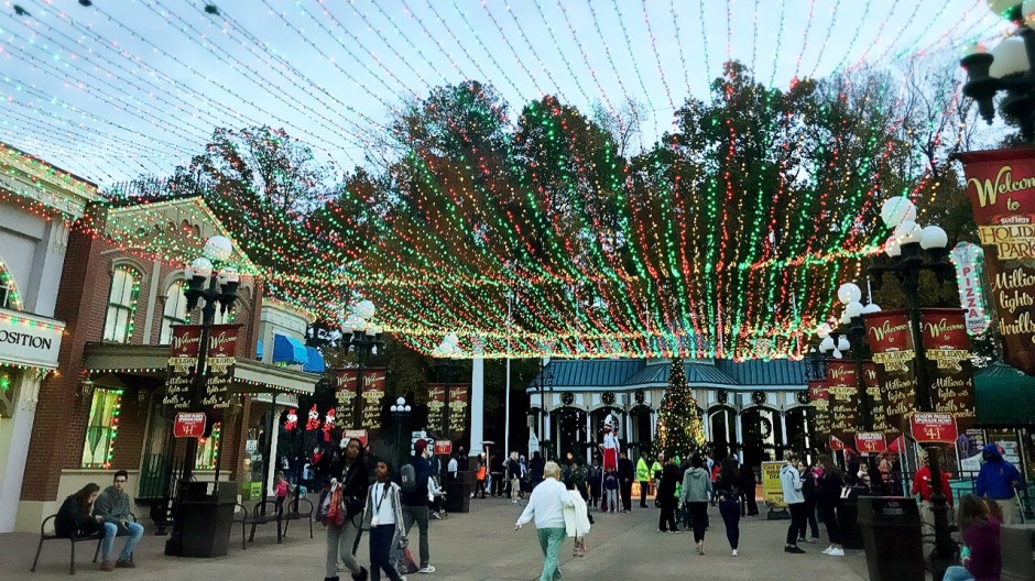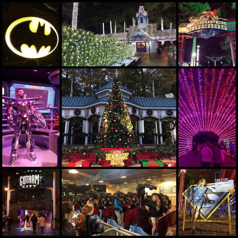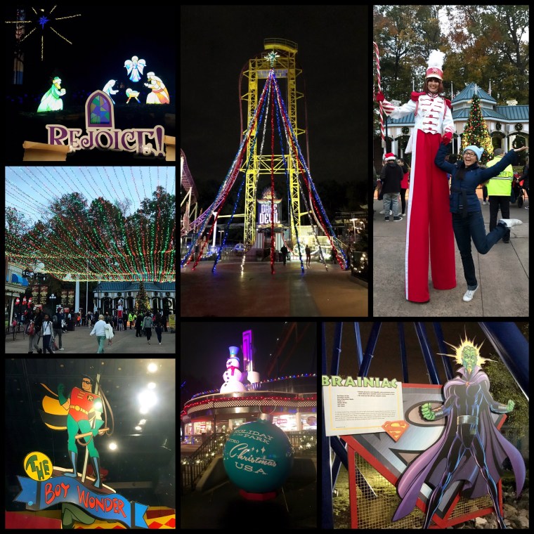 Six Flags Over Georgia is located about 30 minutes outside of downtown Atlanta and during the week of my Georgia visit they had special evening hours. Unlike Magic Mountain where thrill seekers could enjoy the park during the morning hours – afternoon hours, Over Georgia had afternoon – evening hours (4pm-10pm). Unexpected, but with the holiday lights and decor it made for a festive evening.