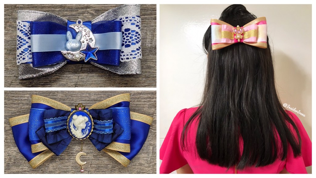 Adult Bows (Adorkabow): I’m a nerd and dork at the core, and bleed Sailor Moon – so when I found out about this independent shop that does Sailor Moon (and other franchises) inspired hairbows I was super interested. Adorkabow (FB Account) primarily sells Sailor Moon inspired enamel pins; however, Sarah, the founder and artist’s passion is making custom one-of-a-kind bows. I’ve ordered 5 already from her, which should say something! My small bows were around $40 a piece and the large one $60, although she can make extremely elaborate ones for more.