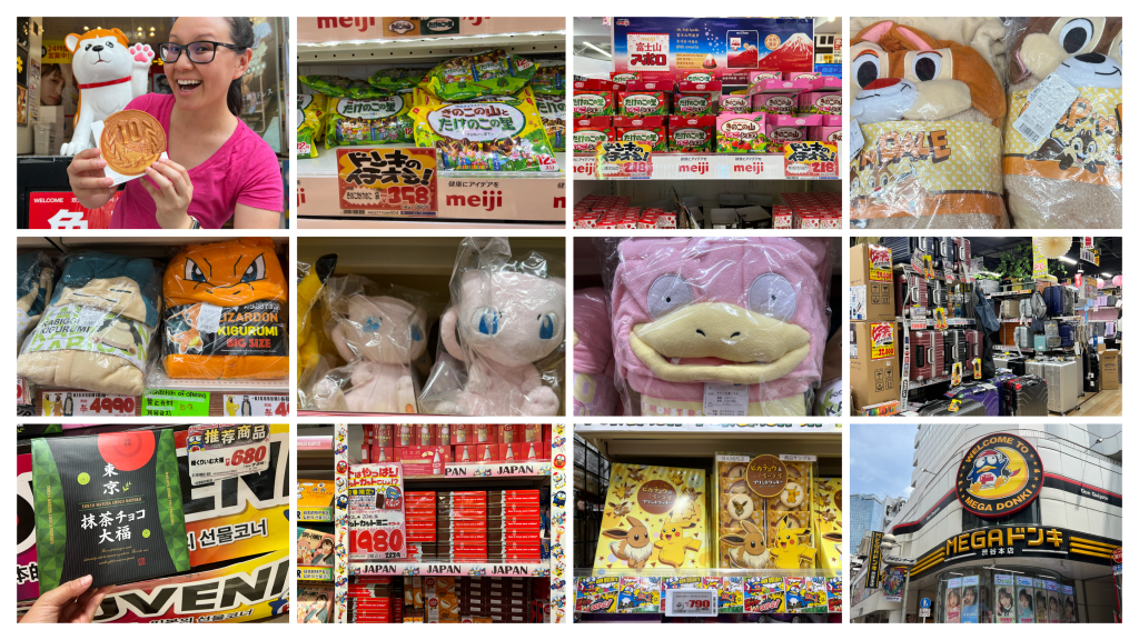 Souvenir Shopping (Mega Don Quixote): This is like a massive Target in Tokyo, Japan. This particular branch is in Shibuya and has 7 floors. It can be a sensory overload, but I bought so many snacks, and misc souvenirs here, and honestly probably would have bought more if my suitcase was bigger. Read more here.